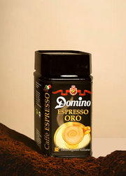 Immerse yourself in the refined world of Domino Café's Espresso Oro instant coffee. This premium instant coffee offers you a unique tasting experience, combining the delicious flavors of hazelnut and caramel in every cup.
